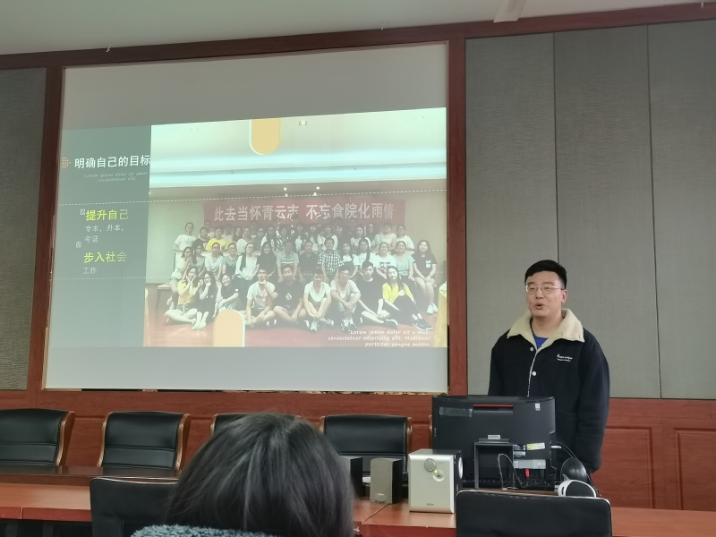 高孝维目前从事会计工作,担任宿迁楚风水韵温泉度假酒店会计主管,在校期间考取了初级会计证书,毕业过后一直从事会计工作,积累了一定的经验。他从在校同学如何度过大学生活,如何安排自己的学习,如何在参与活动中获得锻炼等问题展开。用自己在校期间学习生活的经历,工作以后职场拼搏努力的故事,为与会同学指明了奋斗的方向。